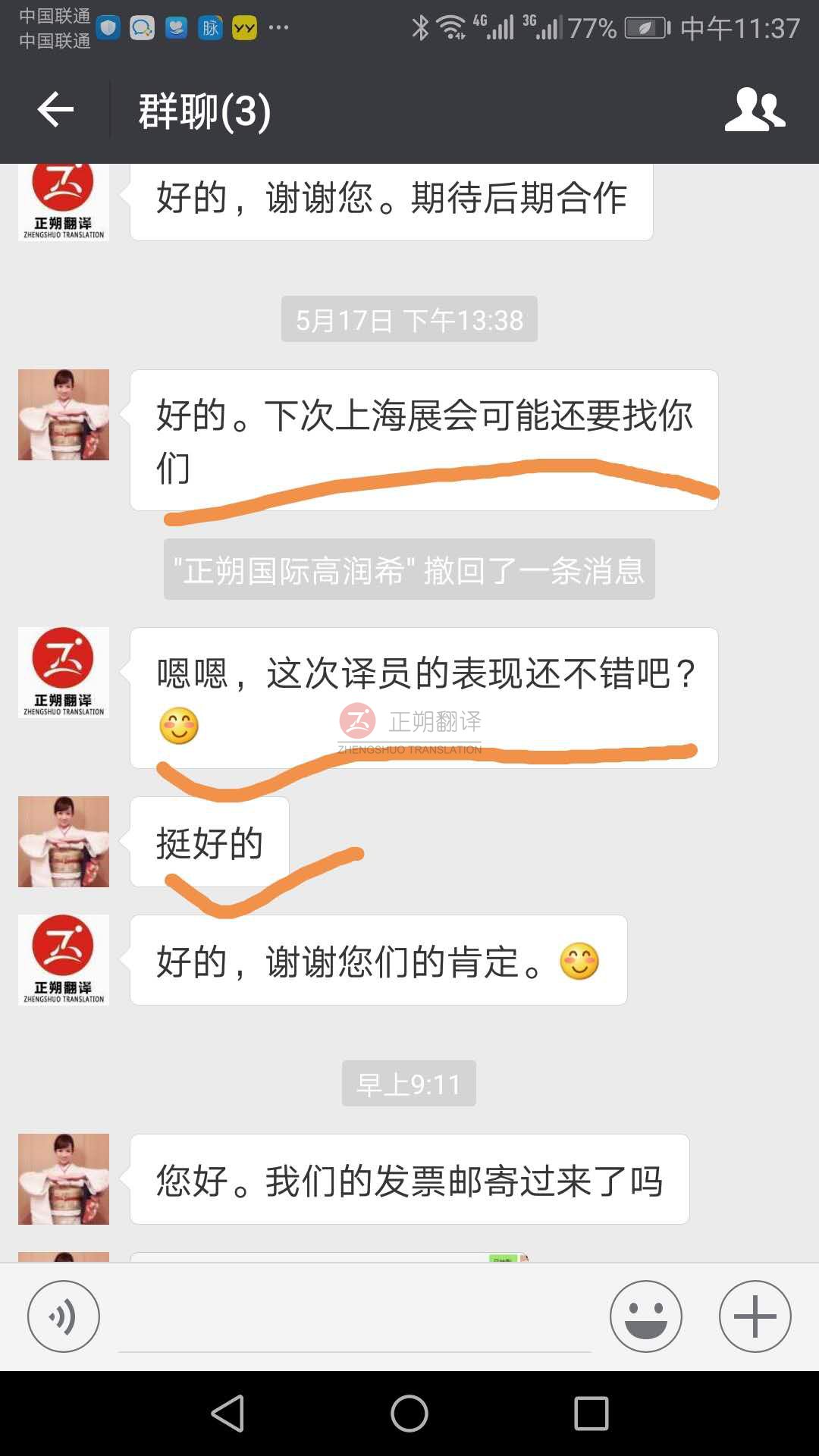 2018年正朔翻譯多次受邀為各類展會(huì)客服提供翻譯服務(wù),其精準(zhǔn)和高效的服務(wù)品質(zhì)受到主辦方的高度評(píng)價(jià)和認(rèn)可。充分彰顯了正朔翻譯作為大型政府機(jī)構(gòu)、企事業(yè)單位翻譯服務(wù)提供商的雄厚實(shí)力和專注于翻譯領(lǐng)域內(nèi)的合作優(yōu)勢。